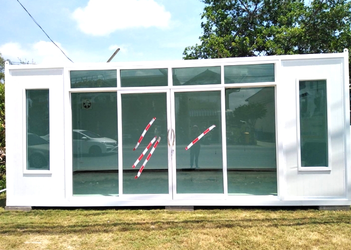 ตู้คอนเทนเนอร์เคลื่อนที่ ราคาถูก รหัสสินค้า : BBC001 ผนังและฝ้าเพดาน บุด้วยฉนวนกันความร้อนโฟมโพลีสไตรีน กันความร้อนกันเสียงรบกวน หนา 5ซม. หรือฉนวน ISO Wall ทำได้ตามสั่ง ปูพื้นด้วยสมาร์ทบอร์ดและปูทับด้วยกระเบื้องยางหรือพื้นลามิเนตตามออเดอร์ ทำสีโครงตู้ ตามความต้องการ ติดตั้งประตูและเจาะหน้าต่างใส่กระจกแบบบานเลื่อน บานเกล็ดและผนังกระจกบานตาย ทำได้ตามสั่ง ติดตั้งระบบไฟฟ้ามาตรฐานแผงควบคุมไฟฟ้ามาตรฐาน มอก. มีความปลอดภัย เดินสายไฟฟ้า มาตรฐาน มอก. ติดตั้งหลอดไฟแสงสว่างพร้อมสวิทช์เปิดปิด, เต้าเสียบปลั๊กไฟฟ้า และ จุดเชื่อมต่อสายโทรศัพท์สายLAN อินเตอร์เน็ต ติดตั้งแอร์ และ พัดลมดูดอากาศ แบรนด์ชั้นนำ รับติดตั้งหลังคากันสาด บันไดเหล็ก ราวระเบียงกันตกออฟชั่นตามสั่ง จัดส่งตู้คอนเทนเนอร์มือสองและตู้คอนเทนเนอร์ดัดแปลงทั่วประเทศไทย ส่งด่วนส่งไวในพื้นที่ กรุงเทพ, นนทบุรี, ปทุมธานี, สมุทรปราการ, สมุทรสาคร, สมุทรสงคราม, นครปฐม, พระนครศรีอยุธยา, นครนายก, สระบุรี, นครราชสีมา ติดต่อ 095-423-5492, 095-761-4537